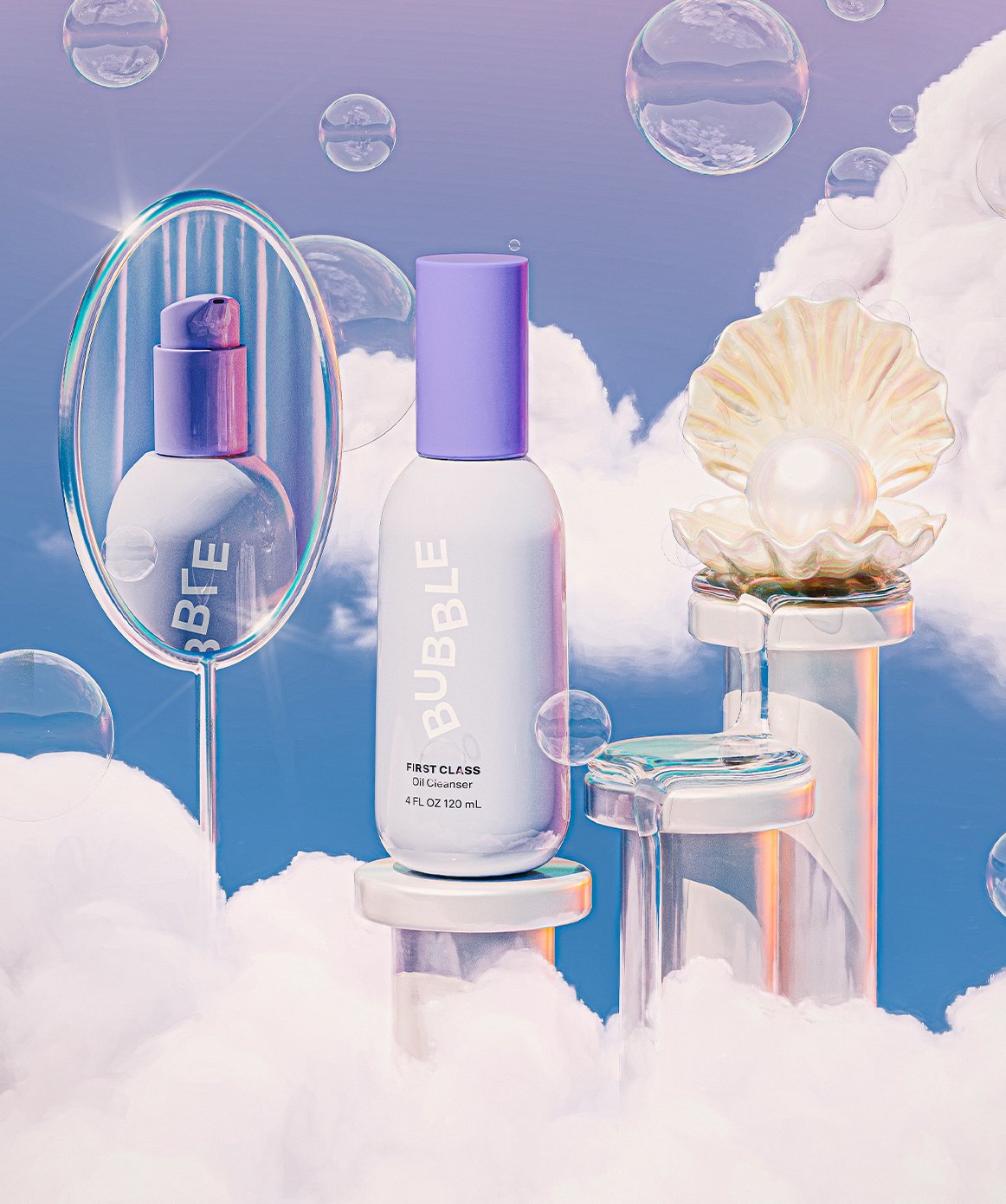 The champagne of cleansers. Bubble’s First Class Oil Cleanser quickly and easily breaks down oil-based products—like your makeup and SPF—and any excess oil buildup. This lightweight oil formula soothes skin and transforms into a milky texture when rinsed away with water. The end result is luxuriously soft, smooth, and makeup-free skin. Use First Class on its own or as the first step in a luxe and lush double cleanse routine.