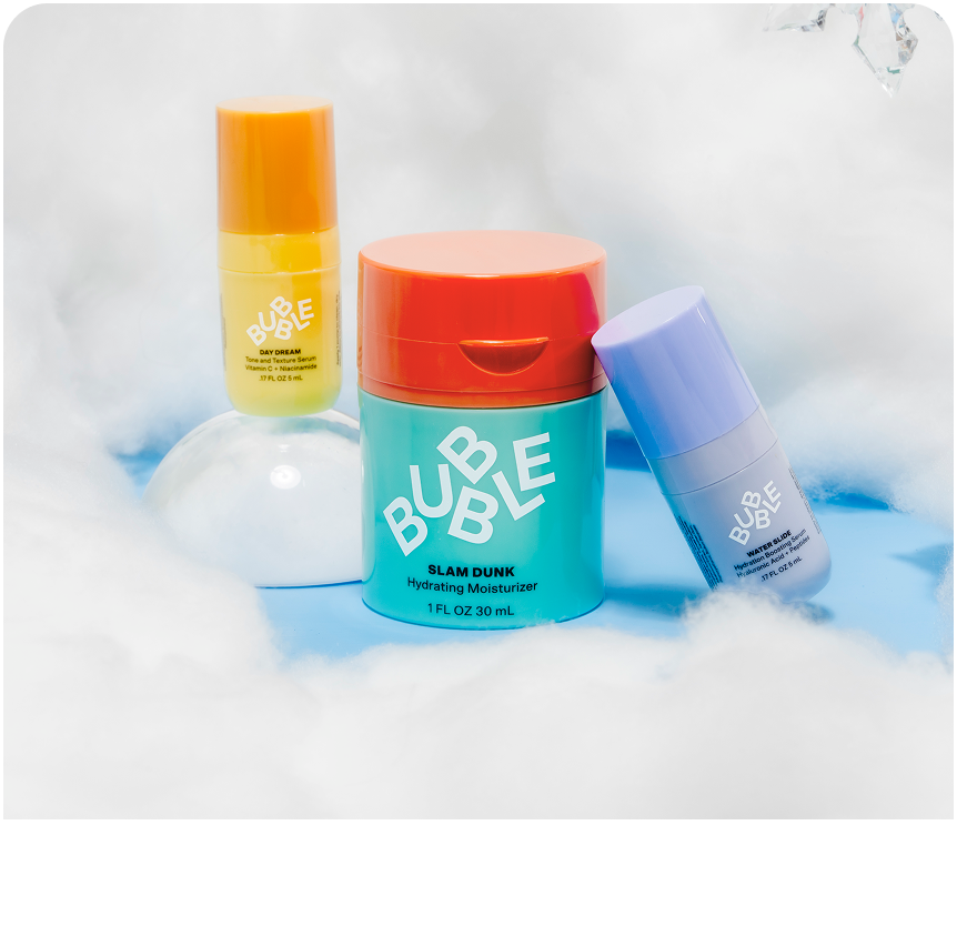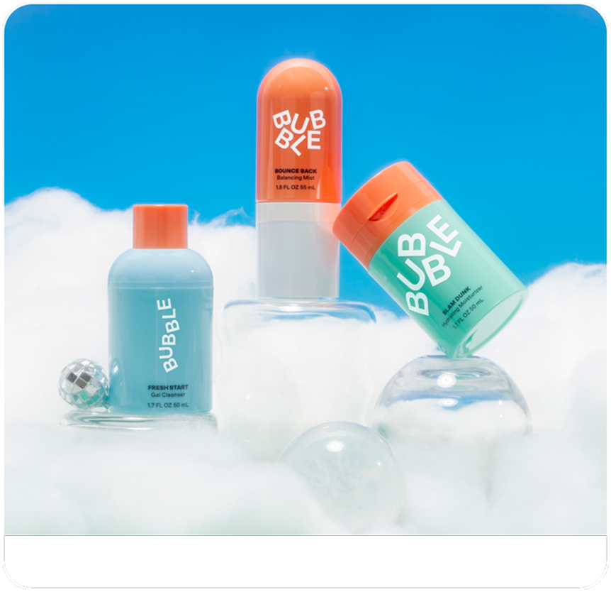 Fresh Start Gel Cleanser, Bounce Back Balancing Toner Mist, and Slam Dunk Hydrating Moisturizer.